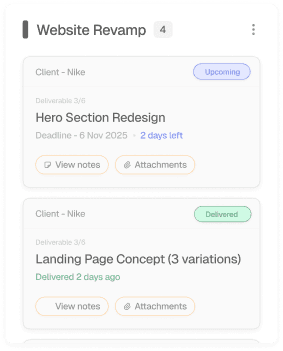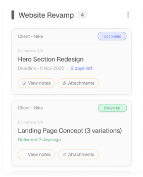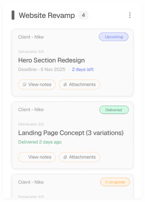 Keep all project details, files, and context organized in one shared space your clients and team actually understand.